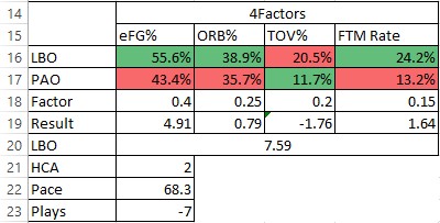 Όπως πάντα για να κάνουμε την ανάλυση θα βασιστούμε στους 4 παράγοντες του Dean Oliver που είχαμε αναπτύξει παλιότερα και πιο συγκεκριμένα ο πίνακας με τα ποσοστά και πως αυτά μεταφράζονται είχε επεξηγηθεί επίσης παλιότερα με αφορμή έναν άλλο αγώνα του Παναθηναϊκού, αυτόν κόντρα στη Νταρουσάφακα.