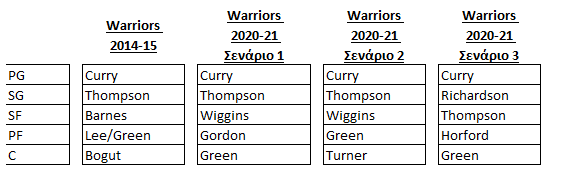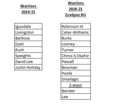 Με βάση τα ανωτέρω, ο πάγκος των Warriors της επόμενης σεζόν μπορεί να είναι ο ακόλουθος: